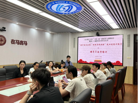 2025年6月5日晚7:00,长沙理工大学“一院一品”就业育人品牌项目暨第二十届研究生学术文化节之“提升面试技能,增强实战经验”就业技能训练营之辅导员招考培训在云塘校区文科楼B505顺利举行。本次活动邀请电气与信息工程学院辅导员楚艳鸽、吴佳骐担任主讲嘉宾,马克思主义学院学工办主任曾蓓主持,10余名2025届毕业生参加了培训。