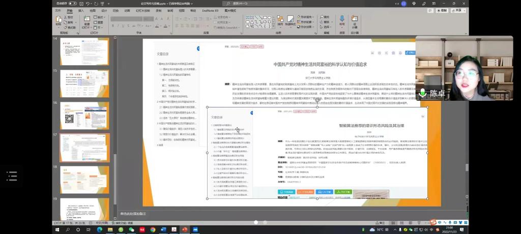 2022年11月23日晚上19:00,长沙理工大学马克思主义学院采取线上会议方式开展学术论文写作指导会。会议由马克思主义学院院长张明海教授主持,由《中国教育报》理论周刊高级编辑张金岭老师、《江苏社会科学》常务副主编吴玲老师和《探索》编辑部思想文化建设与传播栏目编辑陈卓老师主讲,马克思主义学院全体学生参加了此次会议。
