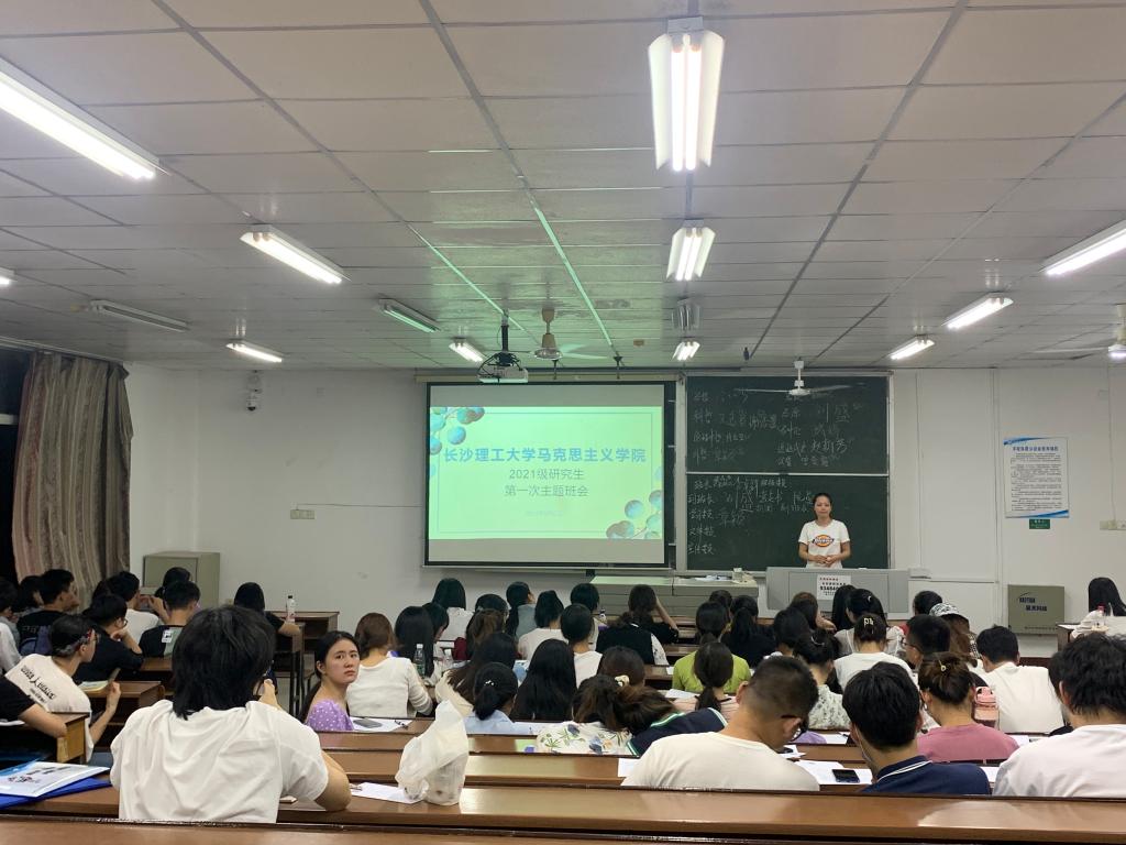 9月6日19:00,马克思主义学院在金盆岭校区四教309教室组织召开2021级研究生2021年秋季学期第一次主题班会。会议由辅导员曾蓓主持,2021级全体研究生参加。