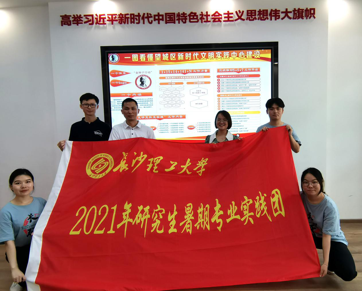 望城区文明实践、志愿服务工作成效突出、经验丰富,走在湖南前列。为了解掌握新时代文明实践中心、站点建设运行的真实情况,学习总结望城区文明实践活动开展的成功经验、建设运行的优秀做法,7月28日,长沙理工大学马克思主义学院研究生暑期专业实践团前往望城区新时代文明实践中心、雷锋路社区新时代文明实践站,开启2021年度暑期调研实践活动的第三站。