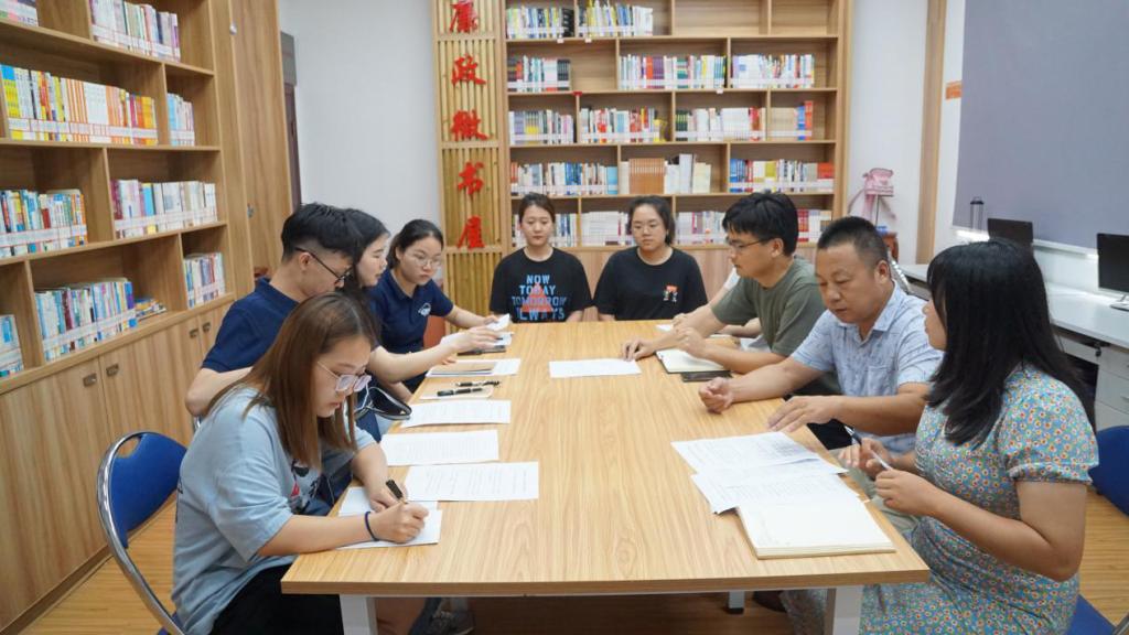 下午2点,实践团成员来到果园镇,与镇新时代文明实践所负责人、社会事业综合服务中心主任易国杰,副主任兼长沙县果园田汉文化艺术团团长、长沙县果园镇田汉小戏骨社社长史润东,干事梁焕鑫、余晖等人进行了深度交流。在交流期间,果园镇有关人员就该镇新时代文明实践所的基本现状、活动开展情况、以及基层文化建设的丰富经验和困惑疑虑等内容向成员们进行了详细介绍。团队成员们针对村规民约化解基层矛盾、党员带头推动移风易俗、文艺骑兵促进文化繁荣、戏骨培训弘扬戏曲文化、先锋评选引领社会风尚等特色亮点,认真地请教学习、聆取意见,并积极运用所学知识对果园镇目前所面临的机遇、挑战与负责人进行探讨,力求为果园镇新时代文明实践工作的常态化发展贡献长理智慧。在随后的阵地参观中,成员们充分感受到了当地青少年参与田汉小戏骨公益培训、暑期功课辅导支教活动的积极性,并表示其常态化开展活动的经验值得学习借鉴。另外,此次调研活动中的问卷调查以网络链接的形式发放,两镇工作人员对此提供帮助。