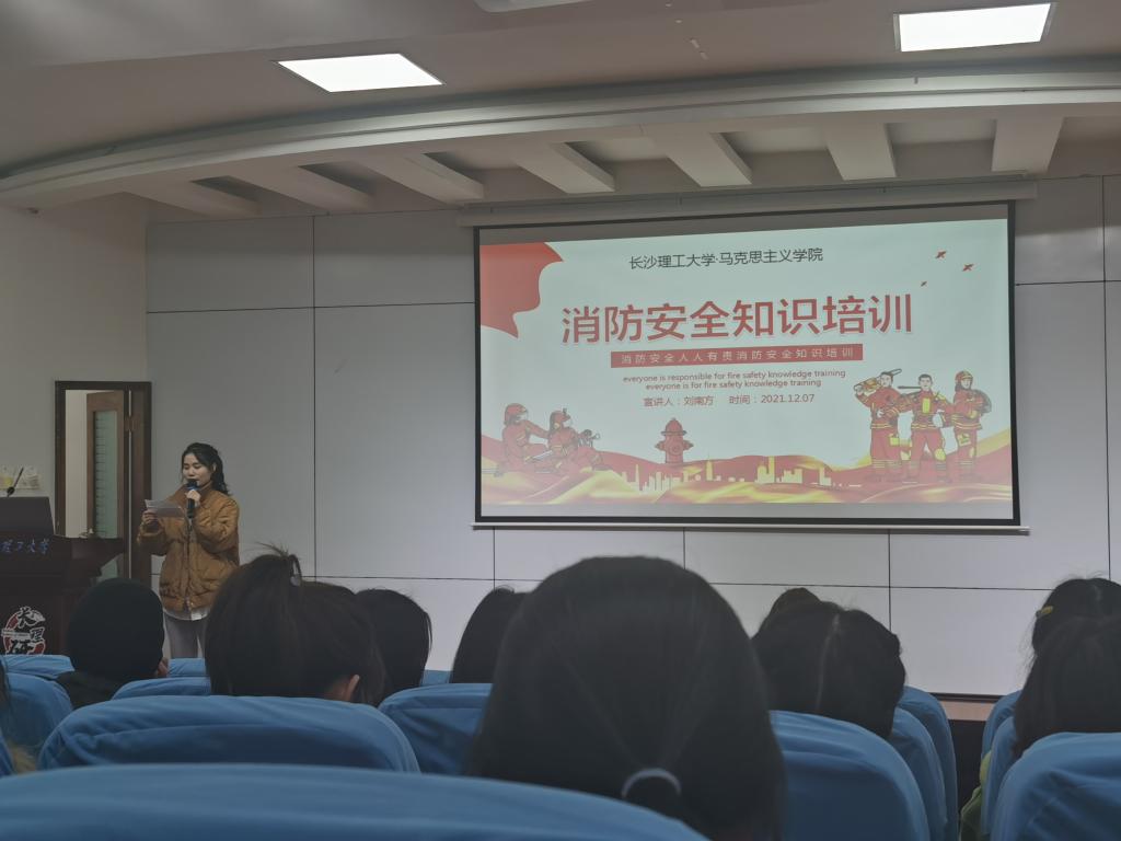 2021年12月7日下午3:30,长沙理工大学马克思主义学院举办的消防安全知识培训活动在金盆岭校区12教200报告厅举办。长沙市普消消防宣传中心刘南方教官为本次知识培训宣讲人,马克思主义学院辅导员曾蓓,2020级、2021级全体研究生参加本次活动。