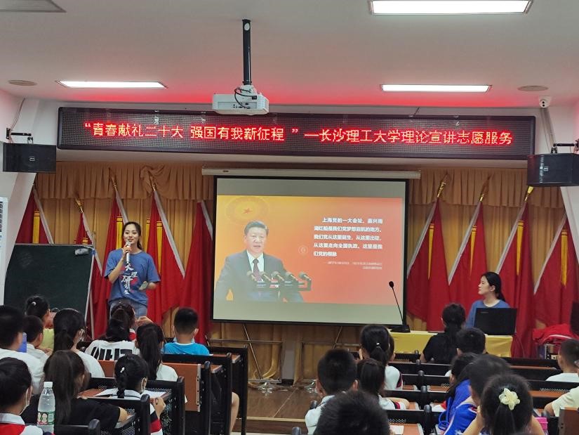 为进一步讲好红色党史故事,赓续红色血脉,7月14日上午,长沙理工大学理论进基层暑期专业实践团来到长沙市天心区青园街道康园社区,为中小学生们开展红色党史系列理论宣讲。