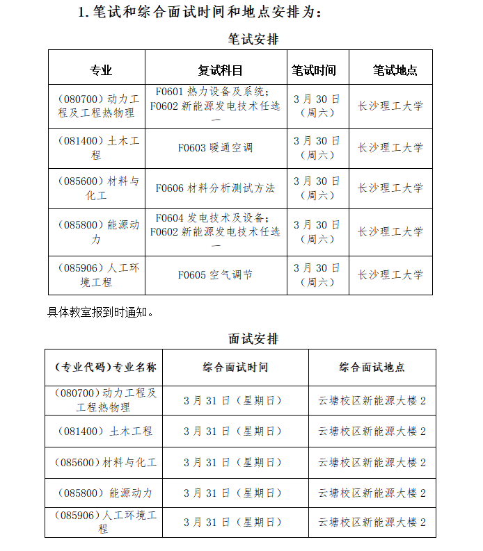 我院硕士研究生复试工作分两批进行。2024年3月29日-3月31日在长沙理工大学云塘校区进行第一志愿考生复试。调剂考生复试时间计划安排在4月初到4月中旬(具体时间另行通知)。