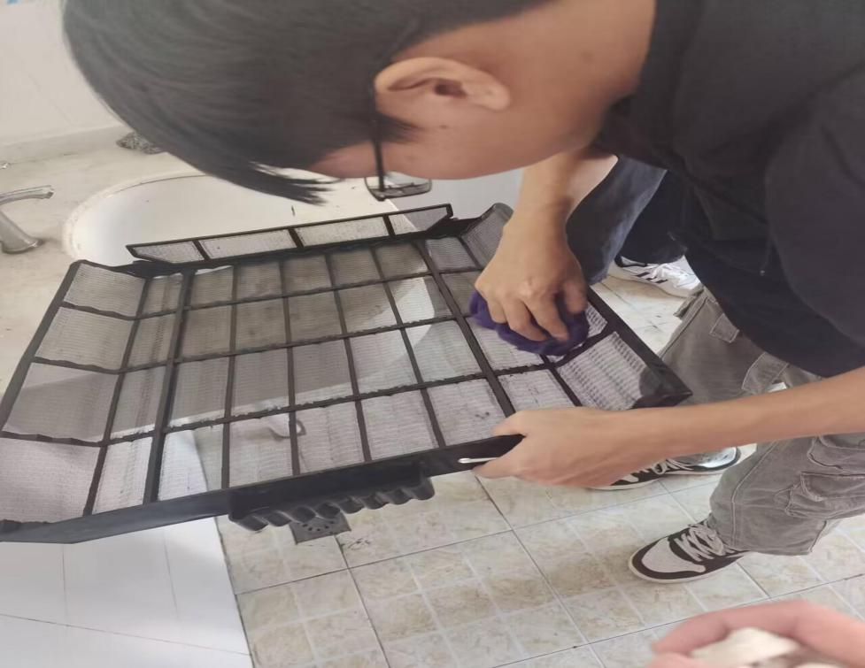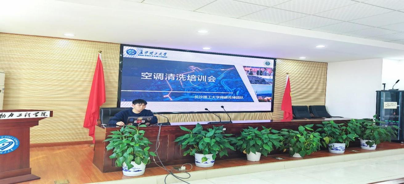 为适应气温变化,改善师生工作、居住环境,阻断病菌滋生及践行节能理念,长沙理工大学能源与动力工程学院“降碳青锋”志愿服务团于11月21日下午开展空调清洗活动。