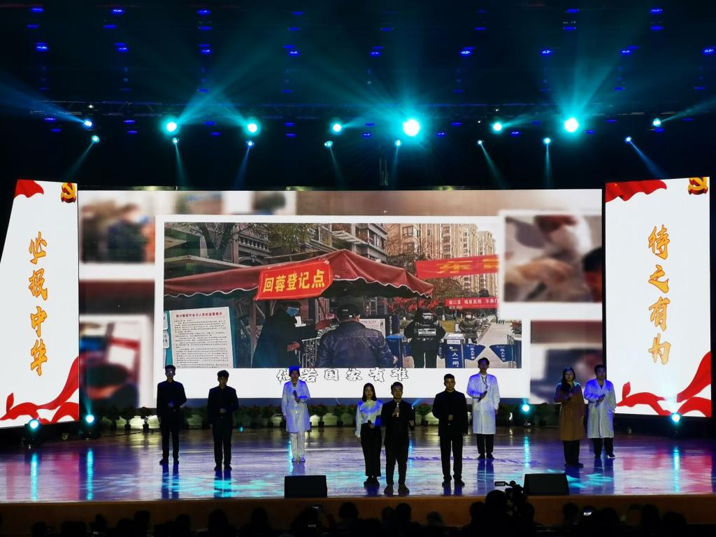 由能动学院带来的朗诵——《家国》第二位出场,同学们以家书为引,讲述了抗疫期间一段段充满温情的故事。辞别父母的赵春光医生,告别爱人的张定宇院长,还有千千万万在抗击疫情的战斗中默默奉献的逆行者们,他们的故事通过同学们声情并茂的朗诵,深深地刻进了所有人的心中。节目中同学们或深沉、或激昂的话语饱含着作为中华儿女的骄傲与自豪;或柔软、或激励的字句满载了对华夏英雄的敬佩与向往。