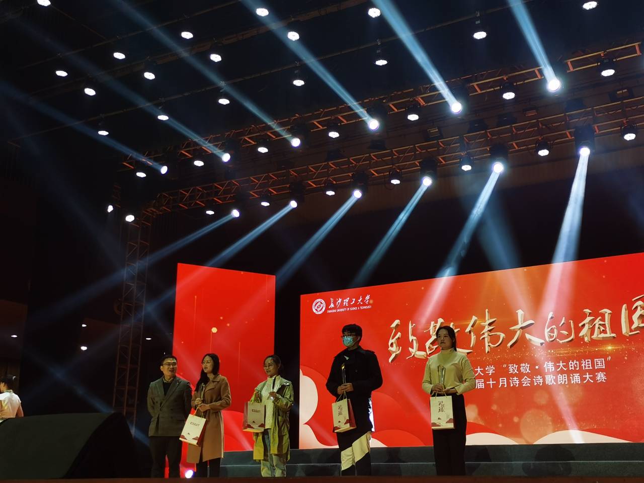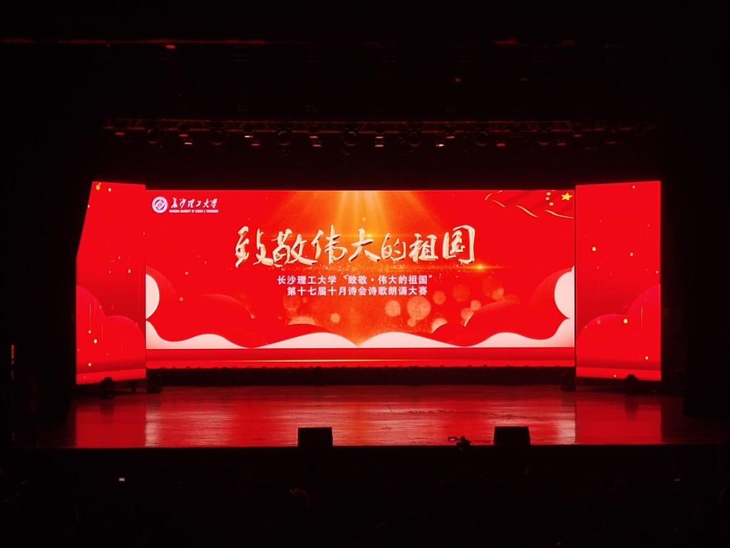 为传诵爱国的时代主旋律,致敬伟大祖国,长沙理工大学于11月22日晚19:00,在云塘校区大会堂举办了“致敬伟大的祖国”主题十月诗会诗歌朗诵大赛。