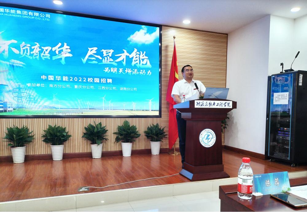 9月28日上午,中国华能集团有限公司(以下简称中国华能)2022届毕业生长沙理工大学专场校园招聘宣讲会在云塘校区新能源大楼二栋502举行。长沙理工大学招生就业处副处长李娜、能源与动力工程学院党委书记成华、院长陈荐、经济与管理学院党委书记丁丹及各学院学生工作负责人、关工委副主任、负责就业工作老师,中国华能南方分公司副总工兼人资部主任胡任亚、中国华能湖南分公司副总工兼人资部主任石东江及中国华能各分公司招聘代表33人,200多名毕业生参加。会议由中国华能湖南清能公司综合部主任李海星主持。