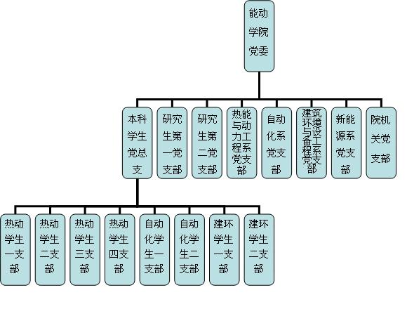 本届学院党委于2008年12月经党员大会换届选举产生,并通过学校党委批准任命。现有党委书记1人,副书记1人,党委委员4人;院党委下设1个本科学生党总支、7个直属党支部,其中教工党支部5个,研究生党支部2个,见图1。