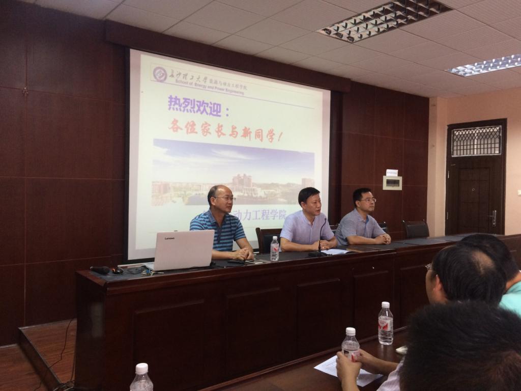 9月9号下午3点半,能动学院于工一A428召开了2017届新生家长见面会。学院院长陈荐教授、院党委书记陈冬林教授、院党委副书记田向阳、2017级新生班主任、各系系主任、心理健康教育汪华丽老师以及2017级新生辅导员罗亦欧老师同各位新生家长参加会议。会议由院党委副书记田向阳主持。