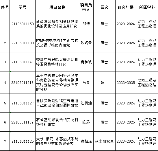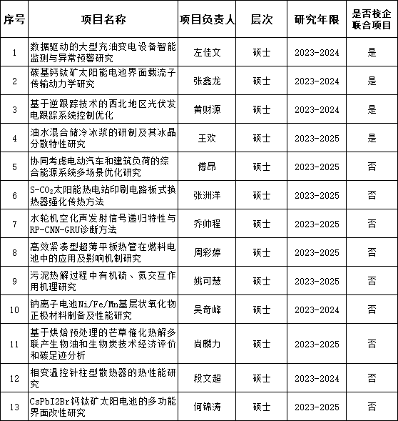 根据湖南省教育厅湘教通〔2023〕68号《关于申报2023年湖南省研究生科研创新项目的通知》及《长沙理工大学研究生创新工程管理暂行办法》([2020]28)文件的精神,经个人申报,学院组织专家评审,拟推荐“数据驱动的大型充油变电设备智能检测与异常预警研究”等13项省级研究生科研创新项目和“新型复合熔盐相变储热体系的优化设计及应用研究”等7项校级研究生科研创新项目参加学校评审。具体名单如下:
