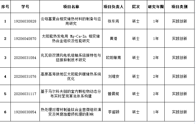 根据《长沙理工大学研究生专业学位研究生“实践创新与创业能力提升计划”实施细则》(长理工大[2020]24号)文件精神,经个人申报,学院组织专家评审,拟推荐“云母基复合相变储热材料的制备与应用研究”等6项研究生科研创新项目参加学校评审。具体名单如下: