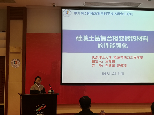 2019年11月19 -20日,由国家太阳能光热产业技术创新战略联盟、中国可再生能源学会太阳能热发电专业委员会主办,中国科学院上海应用物理研究所承办的第九届太阳能热利用科学技术研究生论坛在上海举行。我院李传常副教授指导的研究生王梦帆、马欢2人参会并分别作了汇报。