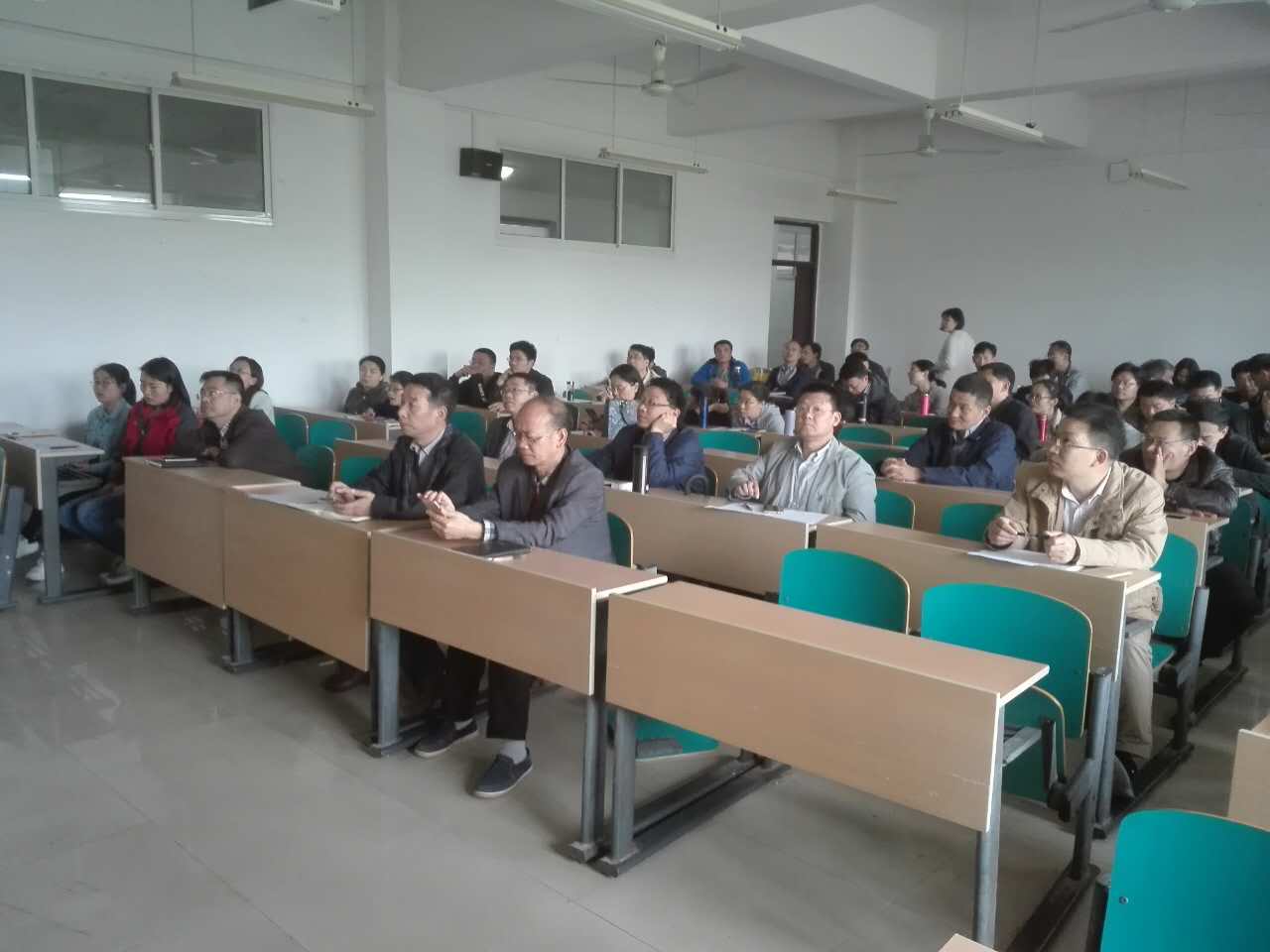 2018年4月24日下午14:30,能动学院组织全院老师在云工一A-215观看网络直播,