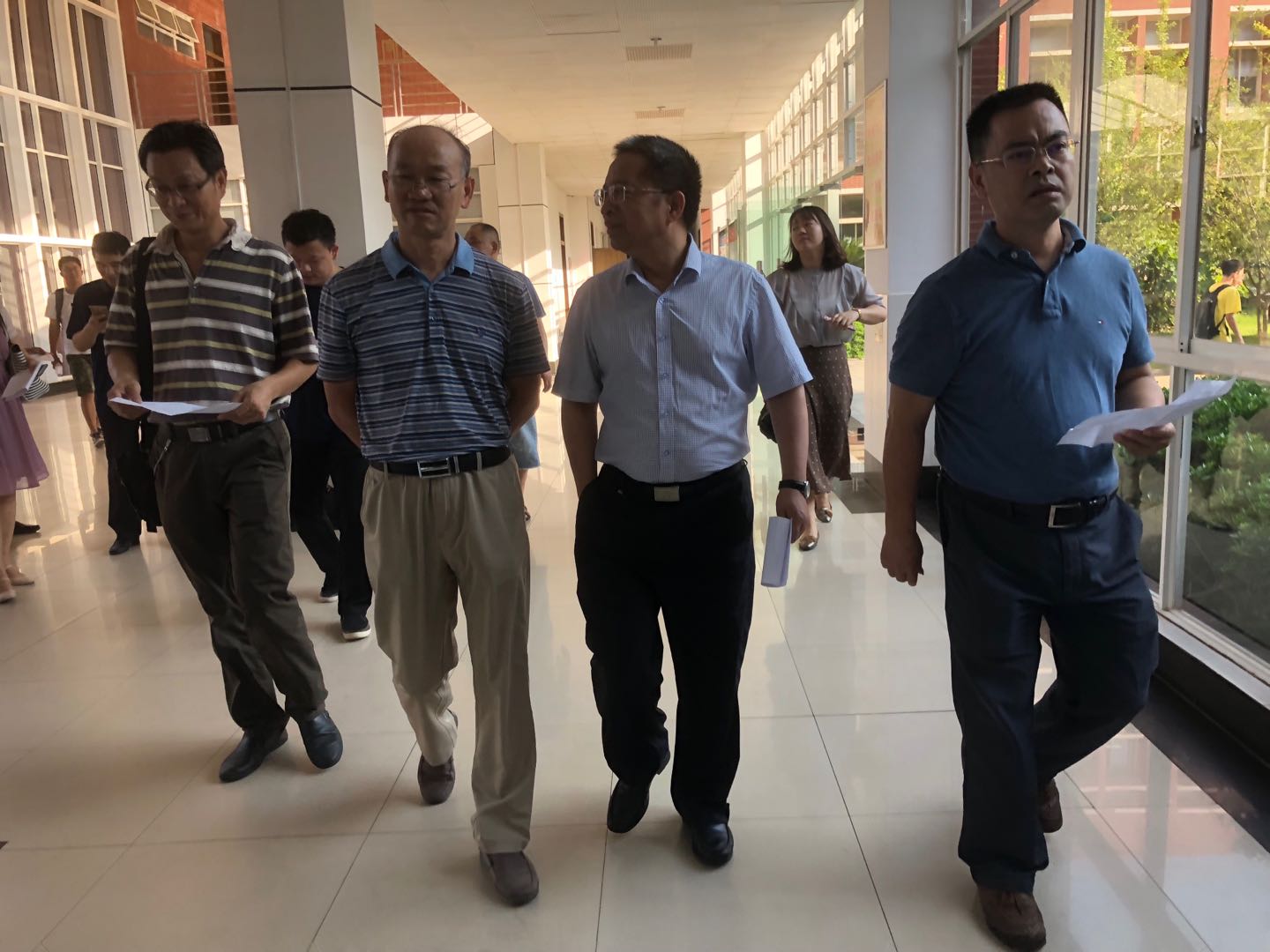 2018年9月3日上午7点50分,学校纪委书记胡永乐教授亲临能动学院检查指导工作,检查了解开学第一天教学运行、教学准备、开学工作方案落实等情况,学院党委书记陈冬林、学院院长陈荐、副书记杨雪峰、副院长刘亮,及教务和学工办人员全程陪同,分两组对云塘校区和金盆岭校区的首日上课情况进行巡查和对实验室进行了检查。