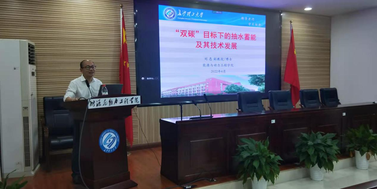 4月25日19:00-21:00,在新能源2号楼502进行了主题为“‘双碳’目标下的抽水蓄能及其技术发展”的通识教育讲座。讲座由能源与动力工程学院田红副院长主持,能源与动力工程学院副教授、硕士研究生导师刘忠主讲。