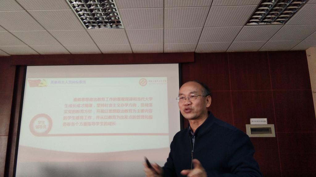 接着,陈书记从“立德树人”的出处、“立德树人”的内涵、提出“立德树人”的背景、“立德树人”是教育的根本任务等方面解读了教师的使命和教育的目的,使老师们特别是青年教师明白了各自的使命和努力的方向。