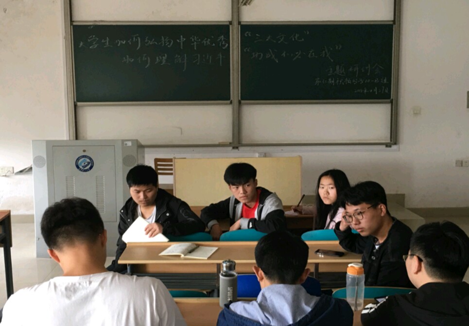 会上,各积极分子踊跃发言阐述自己的看法。其中,第八组成员陈吉同学说:“作为一名大学生,要扛起时代大旗,必须将个人命运与国家发展相结合;国家的发展是个人成长的舞台,个人进步是国家发展的基石。国家发展了,个人的理想才有实现的平台,个人理想实现了,就能为国家的发展提供强劲的动力。关于弘扬‘三大文化’”,第六组成员曹畅同学认为弘扬传统文化要创新。谈及“初心和使命”问题,第四组成员朱嘉旺以“高校女生辱华”事件为例发言,他认为这是当代人遗忘初心的表现,有的人忘记了加入党组织的初衷,忘记了党的宗旨,作为新时代大学生,我们应该牢记使命,不忘初心。党员彭艳楠同志也提出作为入党积极分子我们一定要认真思考自己为什么要入党这个问题,在今后的学习与工作中都不要忘了自己的初心。
