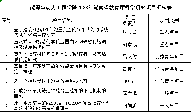 根据长沙理工大学科学技术处《关于申报2023年湖南省教育厅科学研究项目的通知》文件精神,经个人申报,学院组织专家评审,拟推荐“基于建筑/电动汽车能量交互的分布式能源系统集成优化与调控研究”等7项项目申报2023年湖南省教育厅科学研究项目,具体名单如下: