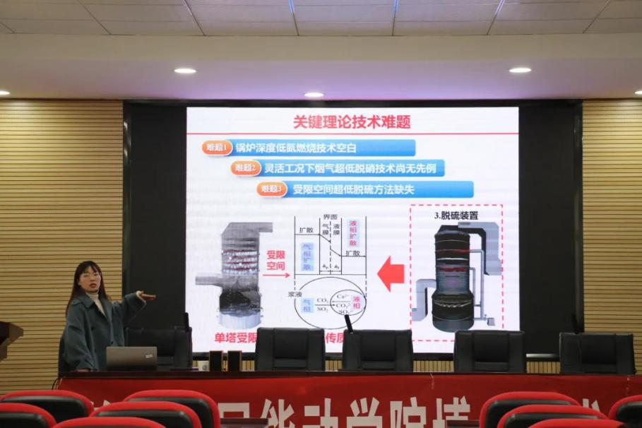 卿梦霞博士首先列举了电厂污染物控制的几个关键理论技术难题:1、锅炉深度低氮燃烧技术空白;2、灵活工况下烟气超低脱硝技术尚无先例;3、受限空间超低脱硫技术缺失;4、全流程工况多污染物协同控制困难。