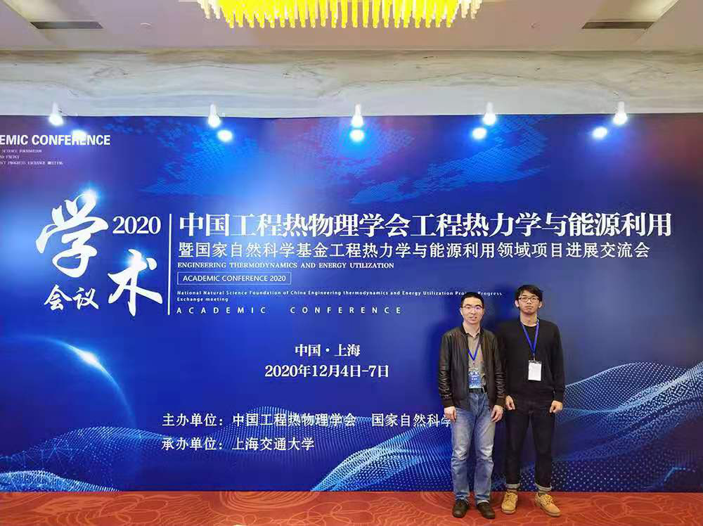 由中国工程热物理学会和国家自然科学基金委主办、上海交通大学承办的2020年中国工程热物理学会工程热力学与能源利用学术会议暨国家自然科学基金工程热力学与能源利用领域项目进展交流会于2020年12月4-6日在上海召开,我院张晓烽老师和颜仁仕硕士研究生参加了此次会议。
