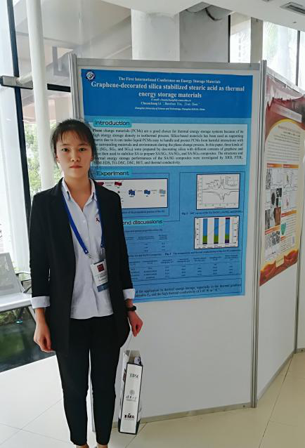 会议期间,清华大学、浙江大学、中国科学院等高校、科研院所的研究生做了墙报交流,我院研究生谢宝珊做了题为 “Graphene-decorated silica stabilized stearic acid as a thermal energy storage material”的现场交流,并与参会学者深入研讨。