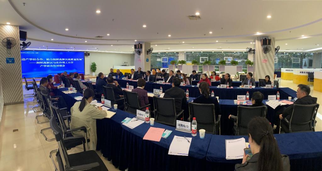 走访后,在湘潭高新区管委会召开“推动产学研合作、助力高新企业发展”交流座谈会,长沙理工大学专家考察团、湘潭高新区管委会相关领导及部分企业家代表参加了会议。会上,考察团听取了各企业负责人对企业现况及问题的介绍,参会专业对问题做出了一一回应,并提出了切实可行的合作方案。我院教师与企业负责人就能源企业发展实际问题等方面进行了广泛交流。并在现有合作基础上,进一步加强高端装备制造产业、人工智能产业、新材料产业、新一代信息技术、数字经济等领域的合作。