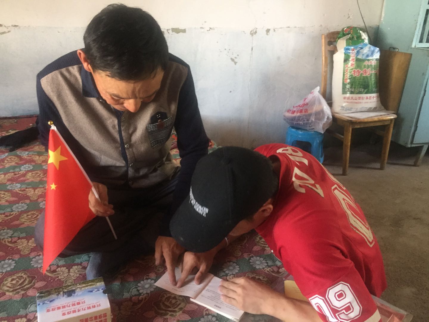 7月30日-31日,长沙理工大学能动学院“一带一路”阜康地区小队成员为村民讲解法律和党的新政策来到村民吐苏莱汗家里为他讲解党的政策和法律,并为吐苏莱汗送去一些法律法规相关的书籍。