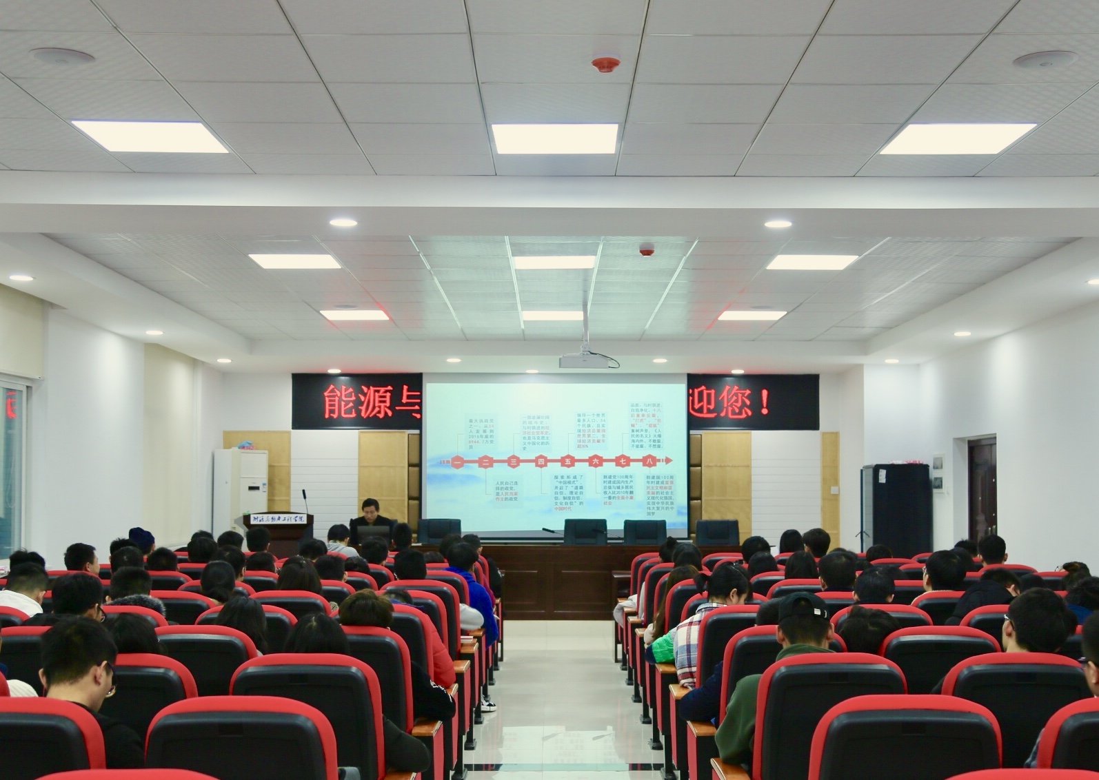 11月20日下午,能动学院与水利学院于新能源大楼二栋502教室共同举行第三十二期积极分子培训班第二课,由能动学院专职组织员王汉华为全体学员授课。