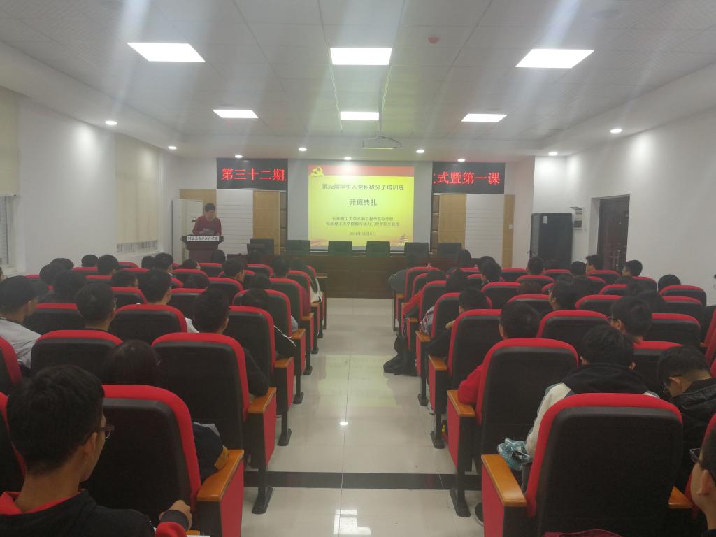 首先奏唱国歌,接着由邓奕琳宣读条例,包括《能动、水利学院第32期入党积极分子分组名单》,《培训管理条例》,《培训课程设置》,随后提出了自己对于本次培训班学员的要求与期待,开班仪式以颂《国际歌》结尾。