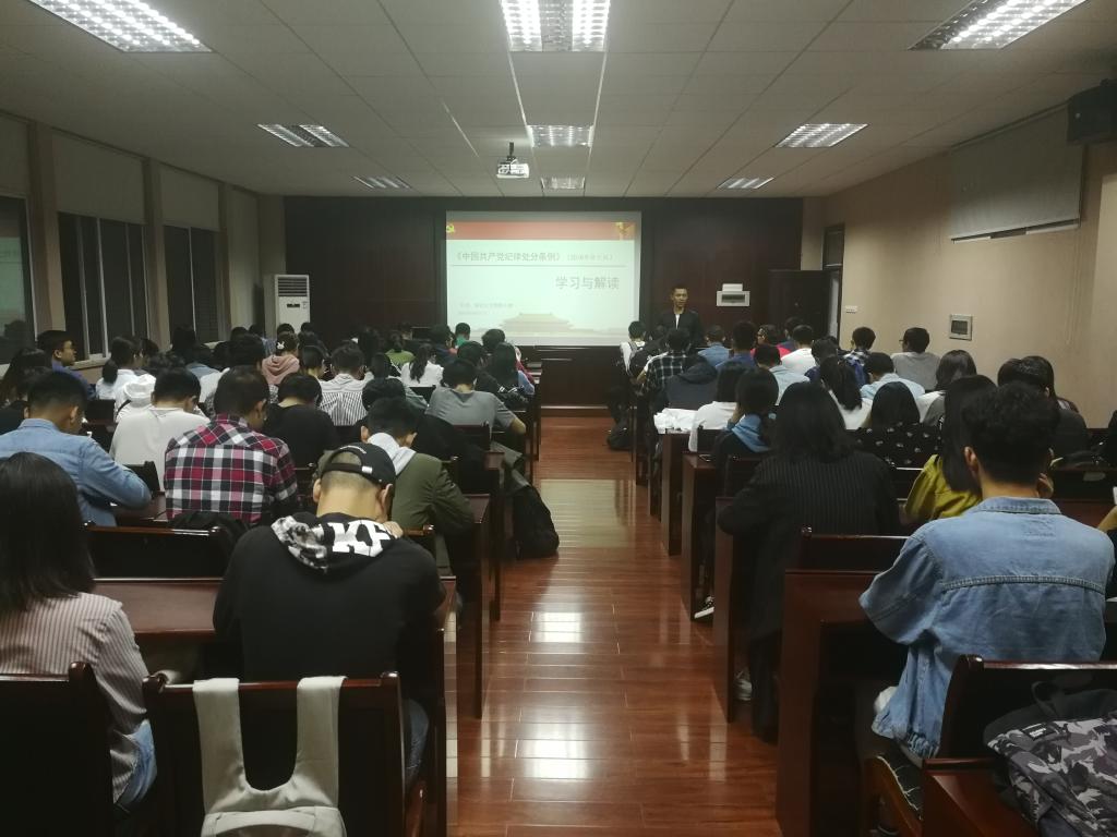 9月27日晚,能动学院在工科一号楼A428会议室召开了以“学习和解读《中国共产党纪律处分条例》”为主题的党员论坛。本次会议由学生党总支副书记王金虎主持,研究生支部副书记陈小健主讲,各支部党员到场参加会议。