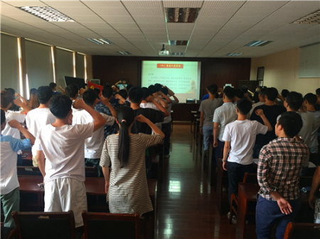 最后,田向阳书记为全体毕业生党员讲授了“不忘初心、追求卓越”的最后一次党课。他在讲话中表达了对同学们的期望,“第一,希望大家不忘初心,牢记入党动机;第二,希望你们勇于担当,争创一流,追求卓越;第三,希望你们能牢记母校的培育之情,常回家看看;第四,站好最好一班岗,在文明离校中,不放松不懈怠,要充分发挥党员的先锋模范带头作用,带领大家文明安全离校。”他强调,各位党员要谨记人生梦想,要为之努力拼搏奋斗。他希望在今后的发展中不管成功或平凡,母校是我们所有校友最坚强的后盾,最温暖的港湾。