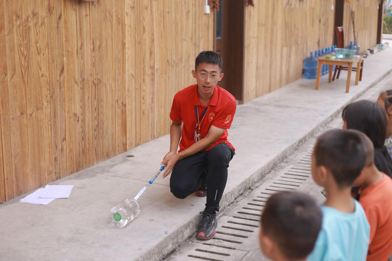 7月14日上午10:00,孩子们早早围坐在操场上好奇地盯着周围摆放好的水桶、水盆和课桌,满怀期待地等着老师们揭晓谜底。