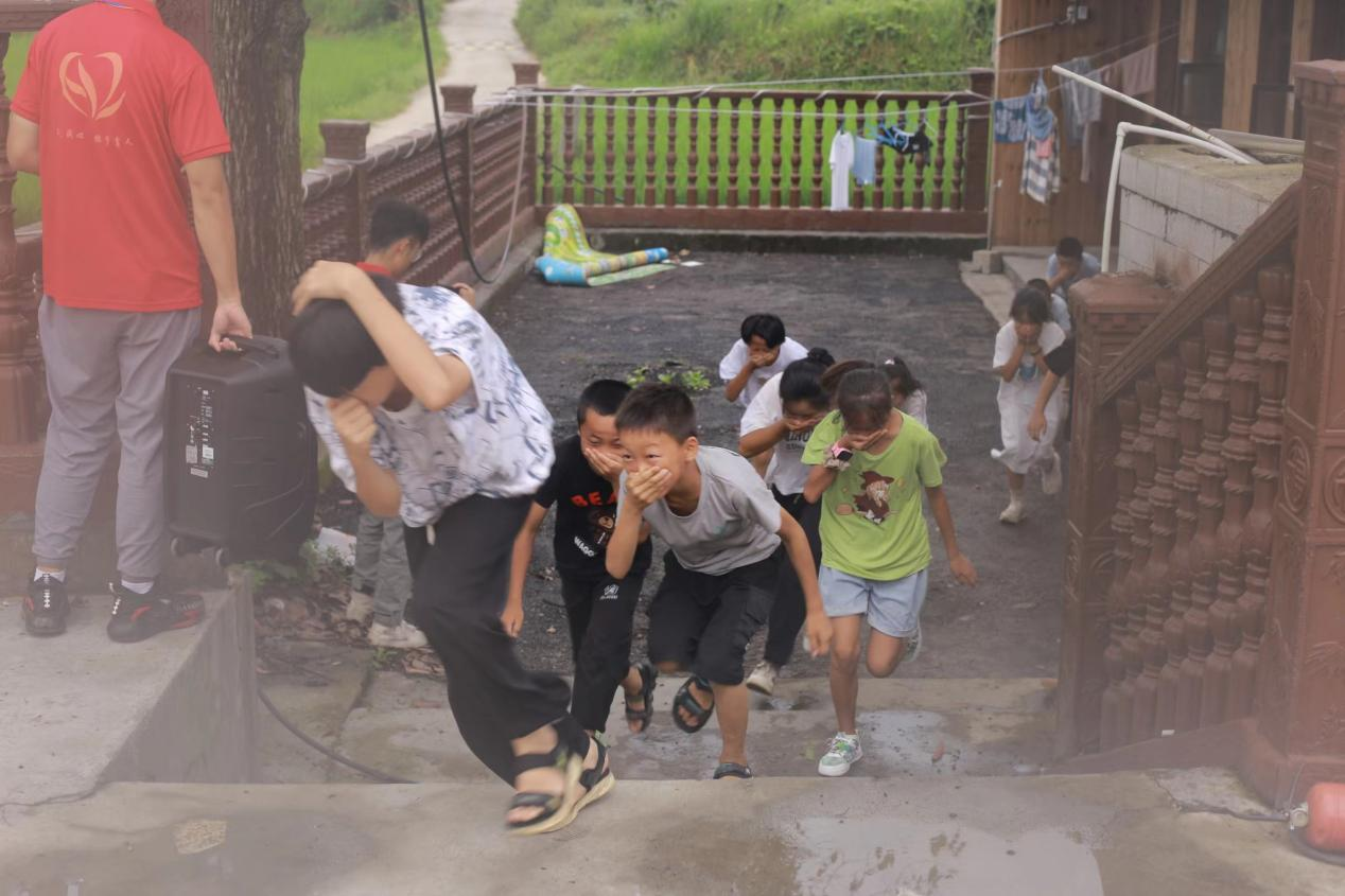 讲座开始前,“红烛”团队进行了一场紧急消防演练,警报声响起时,同学们有序不紊地捂住口鼻、弯腰前进,仅用十三秒全部人员安全到达开阔场地。