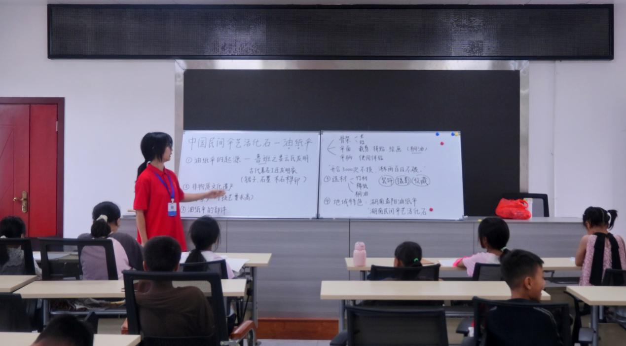 在王语柔生动的讲述中,孩子们穿梭时空——从鲁班妻子云氏初创的古老智慧,到精巧的伞骨与韧纸构成的秘密;从精选竹木桐油的严苛,到湘西油纸伞独特的地域风情。油纸伞不再仅是遮雨工具,更成为一册立体的文化百科全书。
