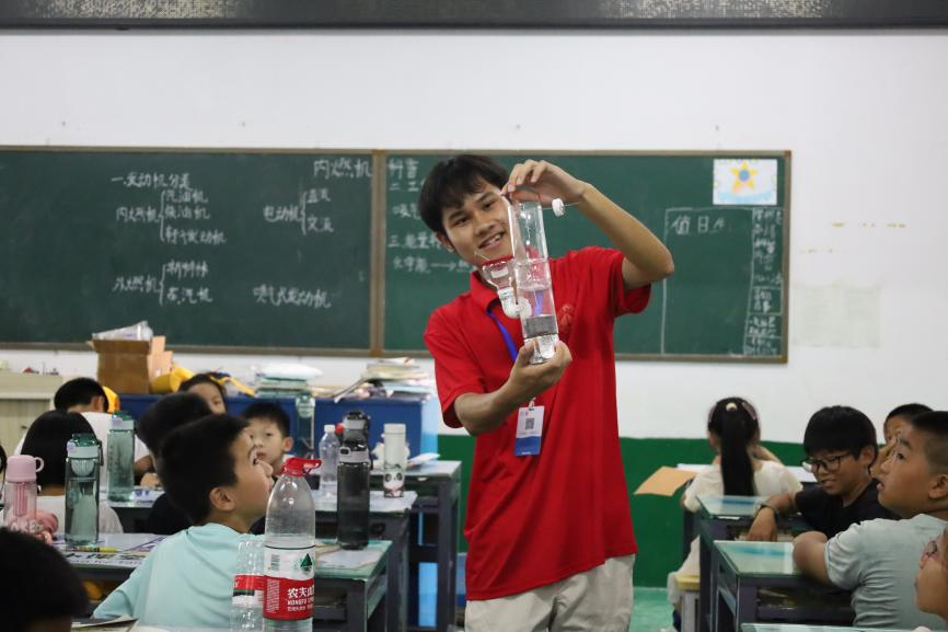 7月26日,在株洲攸县洲上田村,长沙理工大学“红烛”科普筑梦团队开展了一场主题为“小手转动大科学——探秘内燃机的神奇力量”的科普实践活动。队员们精心策划,将复杂的内燃机工作原理知识转化为生动有趣的科普课。