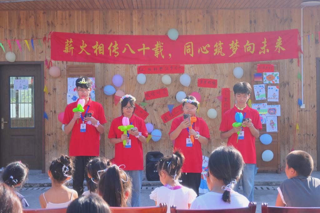 七月的澎湖,童心与梦想在阳光下绽放。7月26日上午,长沙理工大学“红烛”科普筑梦团队在澎湖村操场圆满举办“薪火相传八十载,同心筑梦向未来”主题文艺汇演。