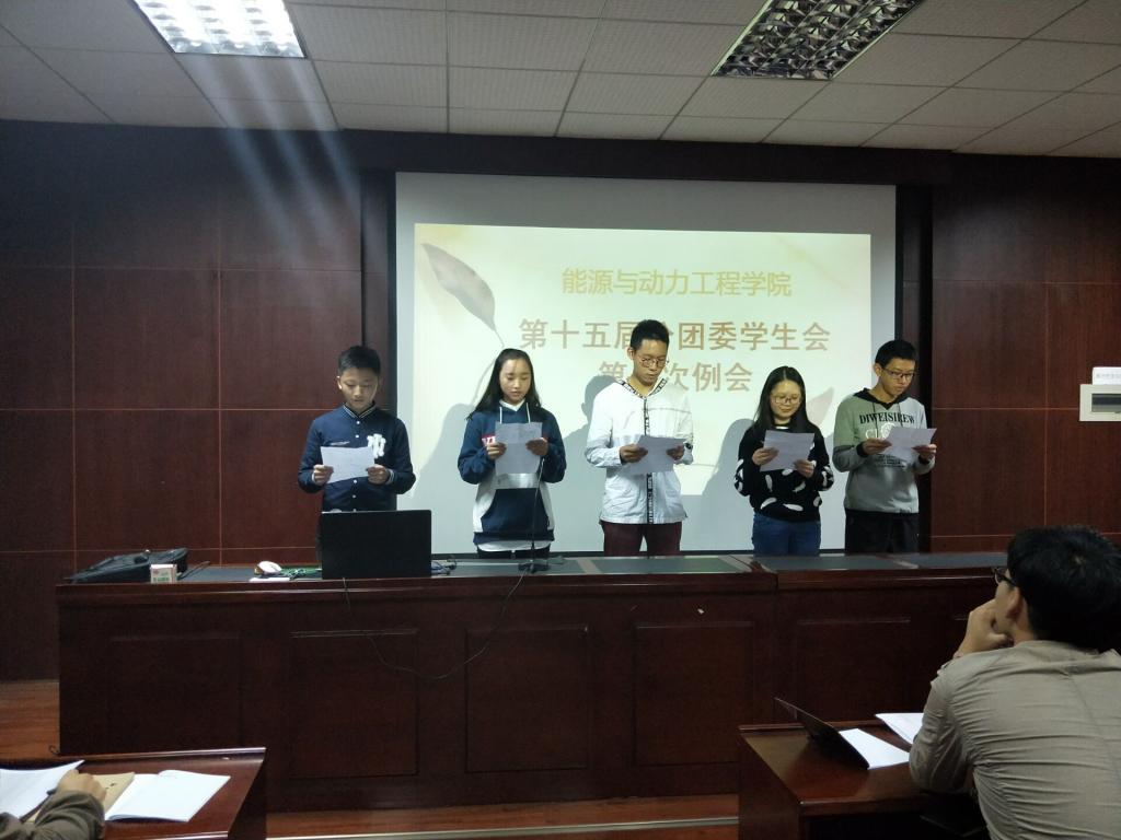 会议伊始,各部依次进行部门成员介绍,17级新成员们积极参与,勇于表现,纷纷为同学们献上了各自准备的节目。办公室朗诵了《你是人间四月天》,学习部改编的《一人饮酒醉》等都获得同学们的积极响应,现场气氛活跃。各部门部长及主席团的各成员也与大家分享了学习、工作心得。其中,副主席陈福明讲到:“要求别人做到的,自己也一定要做到。”外联部部长李相提及的“勿忘初心,永葆干事热情”。简单的话语却格外引人深思。随后,薛玉荣展开了有关《第十五届分团委学生会干部考核及例会制度》,《班委学生会干部工作制度》两项重要制度的评审工作。其中《第十五届分团委学生会干部考核及例会制度》包括学生干部培训、例会制度、学生干部考核三部分;《班委学生会干部工作制度》主要包括工作职能范围、例会制度及班委考核制度。两项制度在大会中均全票通过。例会上,李文豪还讲到:“无论是学习还是工作,我们应当让思考成为一种习惯,在这过程中要拼搏到无能为力,坚持到感动自己。”他的话让同学们开始审视自己,认识到思考与坚持在学习工作上的重要性及必要性。