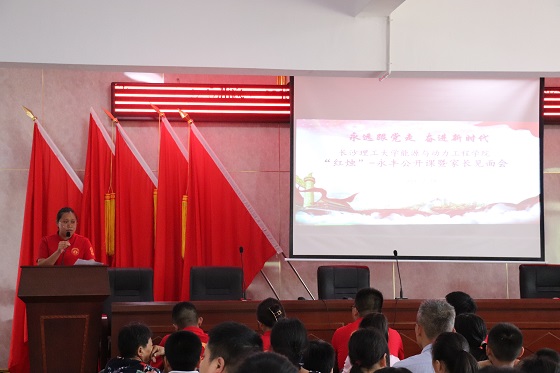 7月20日,由长沙理工大学能动学院“红烛”润心筑梦团队和湘乡市东郊乡永丰村委会共同举办的暑期“润心筑梦”教育试点班正式启动,并举行了“永远跟党走,奋进新时代”主题公开课暨家长见面会。