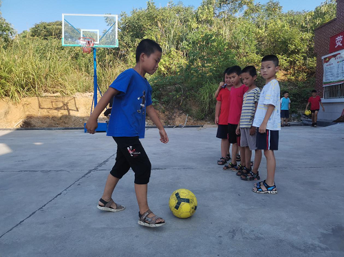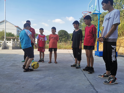 为拓展学生视野,引导孩子热爱足球运动,能动学院“红烛润心筑梦团队”在永丰村支教点开展足球技巧培训小班课。