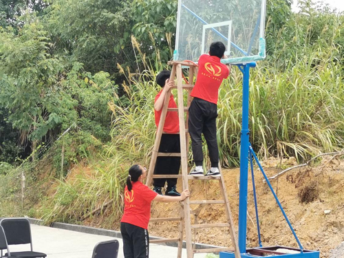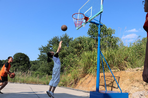 7月29日,永丰村支部前坪的空地上立起一批篮球架。该篮球架为长沙理工大学能源与动力工程学院赠与,用于“红烛润心筑梦团队”永丰支教点篮球兴趣小班课的开展以及丰富永丰村孩子们的课余体育生活。