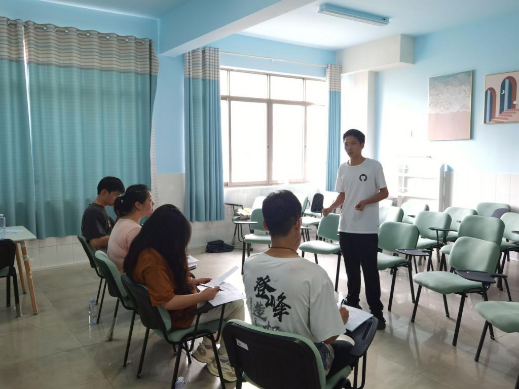 本次面试选拔采取群面的形式,面试同学五人为一小组,按小组顺序先后进行面试。首先,各位同学进行了自我介绍并阐述了自身的竞选优势。接着,罗亦欧老师提问,同学们思考过后,举手回答。最后,罗亦欧老师针对同学们的回答提出了相关的意见和建议,分享了自己对下班团干这一职位的认识。