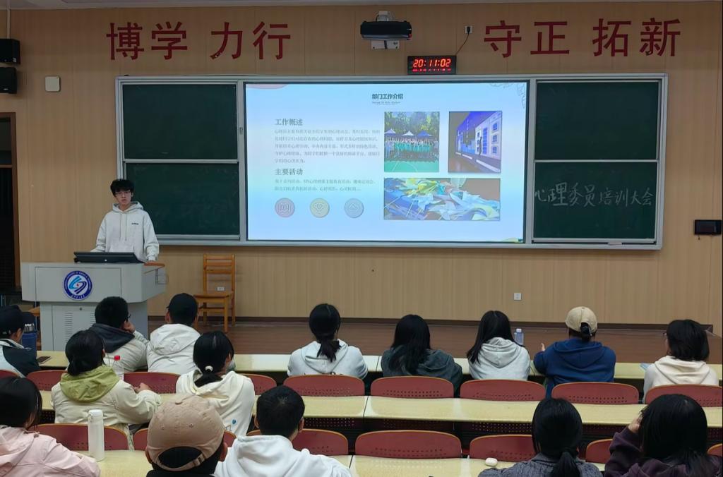 10月23日20:00,能源与动力工程学院在云塘校区综合教学楼B102举办了第二次朋辈心理互助员例会。本次会议由院团委学生会心理部部长徐静雯和副部长何超俊主持,心理部全体干事和各班心委悉数参加。