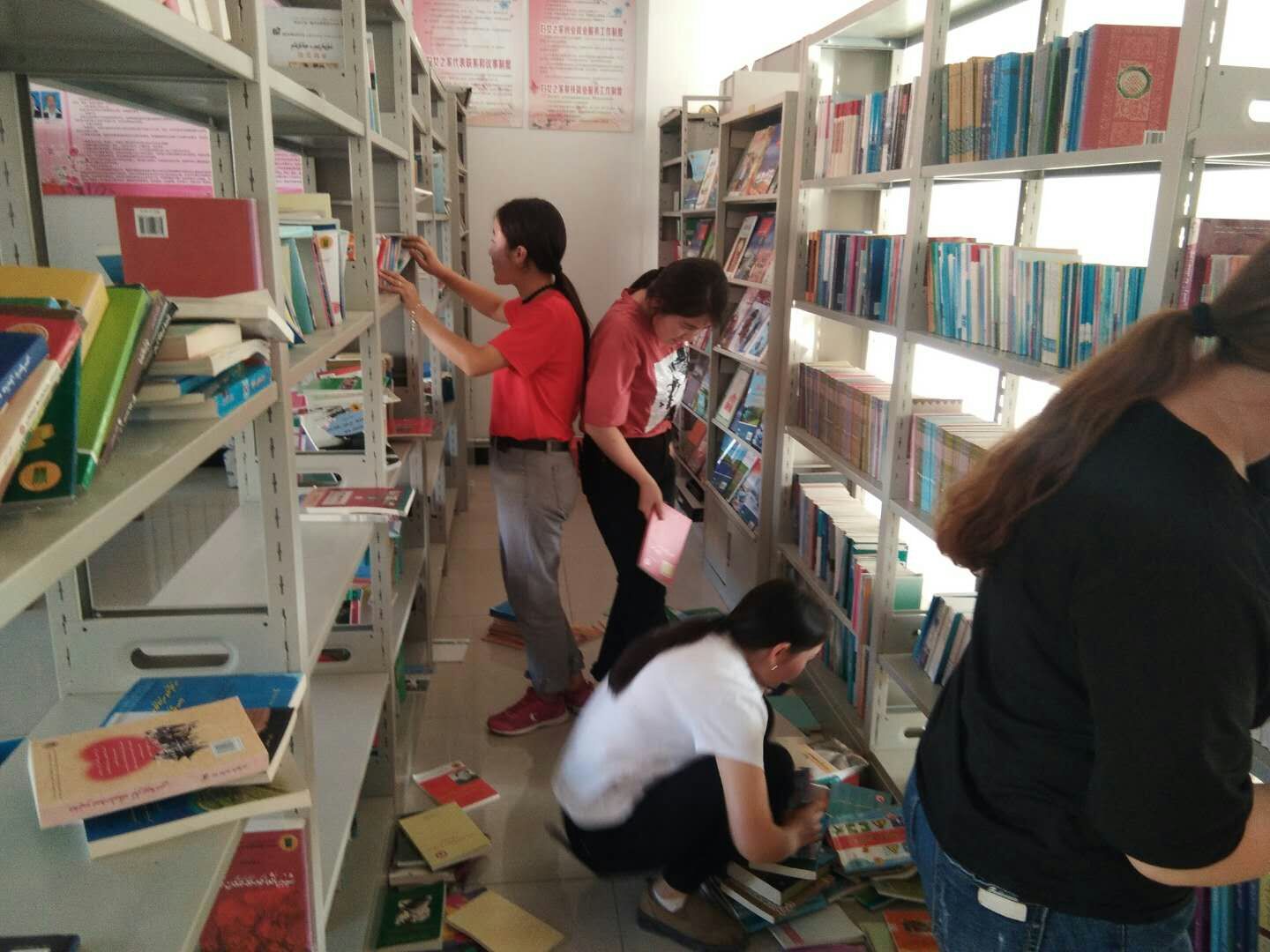 为了丰富新疆青河县阿热勒托别镇库木尔肯村村民们的日常生活,并为他们提供学习机会,由青河县政府捐建的图书馆在库木尔肯村即将向村民们开放,但是由于书籍数量较多,分类整理与上架则成了大问题。志愿团成员向村委了解到这个情况后,认为学习是刻不容缓的事情,故立刻分配好了任务,仔细的将各种书籍分类上架,并将图书馆打扫的“一尘不染”,望着自己的劳动成果,志愿团成员们高兴的笑了。