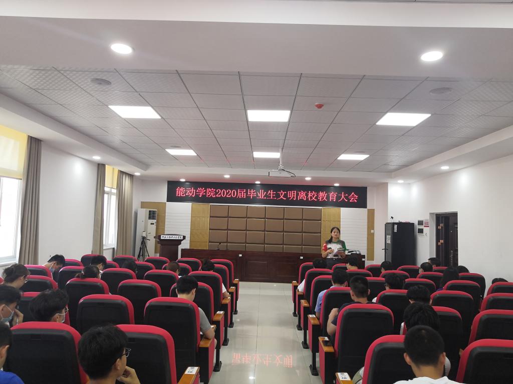 6月11日下午4:00,能动学院在新能源2号楼502会议室召开2020届毕业生毕业教育会议。学院党委副书记靳攀科、毕业生辅导员汪华丽主讲,2020届学生党员骨干与会。