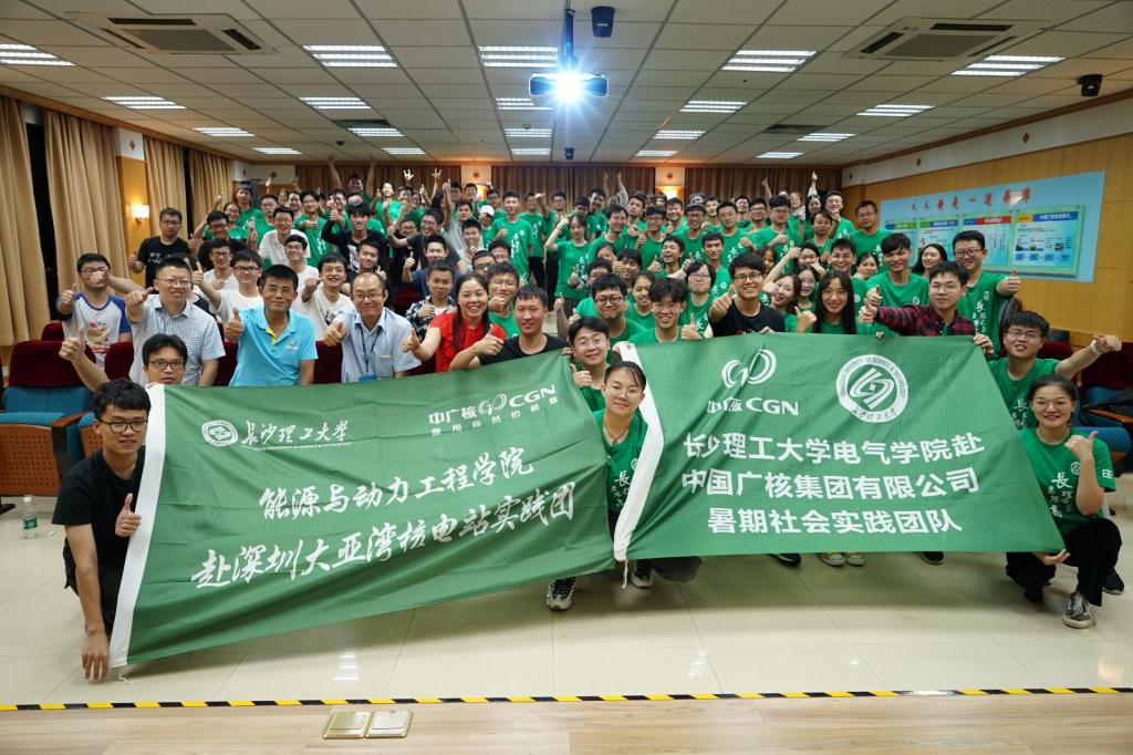 最后,俞霭冬总结发言,他对长理实践团的来访表示衷心的感谢,这是中广核首次与长沙理工大学开展“三下乡”实践校地合作,也是所有校地合作中规模最庞大的一支,达到了足足100人的队伍。最后,他寄语即将从事核电行业的同学们:选择核电既是选择了一份光荣,也是选择了一份责任。同学们要在基本能力和素养上要具备广博扎实的知识、良好的学习能力和严谨务实的工作态度,同时要具备诚信的品德、团队精神以及开拓进取的创新精神,运用正确的核电思维方式磨练工作技能,最终适应岗位任务要求。