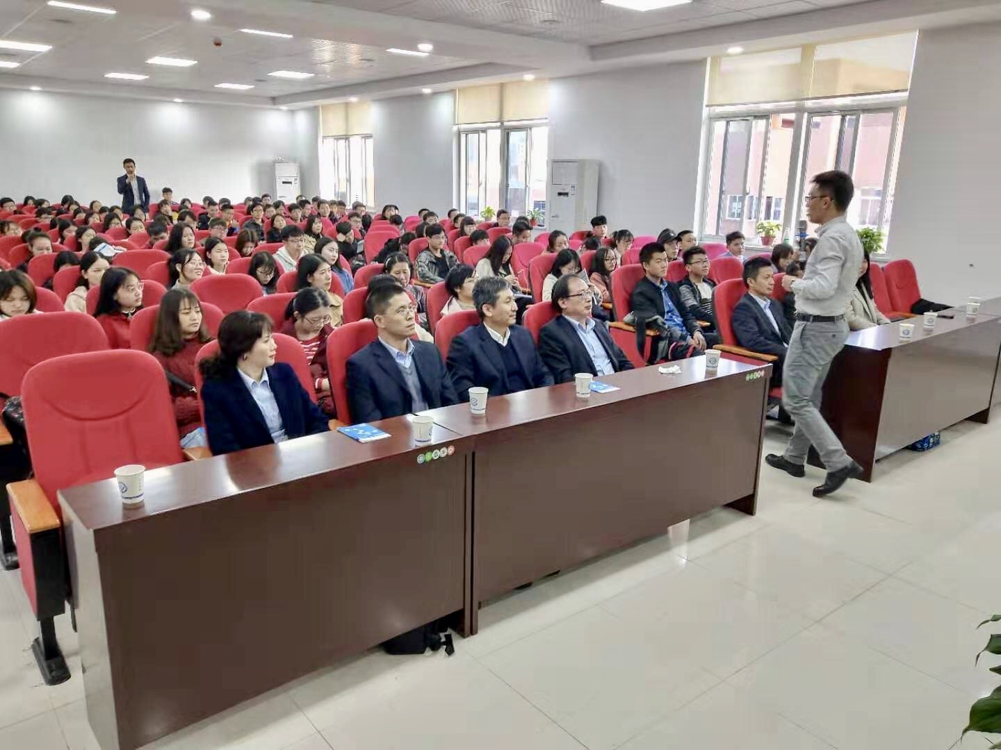 会前,学院对华润电力一行表示热烈欢迎。公司人资部门主管与同学们亲切交谈,深入同学们当中了解基本问题和需求。随后,华润电力人力资源部周主任根据同学们的反馈介绍了公司的基本情况,紧接着通过视频的形式生动全面的展示了员工发展空间,公司企业文化、厂区环境以及员工待遇等同学们感兴趣的热点内容。最后,胡琳琳与同学们分享了在华润电力的所处所感,高度赞扬了公司对当地经济建设和国家电力行业做出的重大贡献。