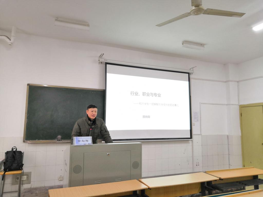 12月9日下午,能动学院职业规划讲座在金盆岭校区16教313顺利开展。校招生就业处副处长田向阳为大家授课,学院2018级120余人参加本次活动。
