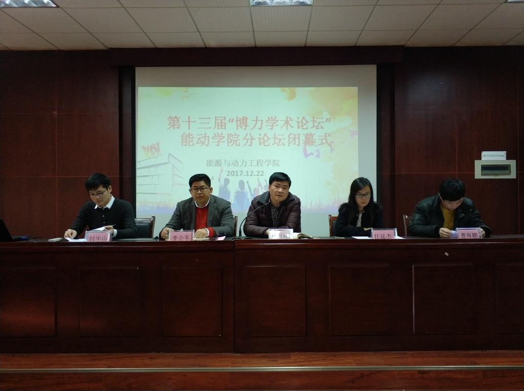 2017年12月22日上午,长沙理工大学第十三届“博力学术论坛”能动学院分论坛闭幕式在云塘校区工科一号楼428报告厅举行。院党委副书记杨雪峰,专业教师任延杰教授出席闭幕式,全体在校研究生参加活动,闭幕式由研究生班主任李小军主持。