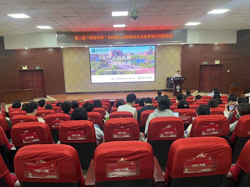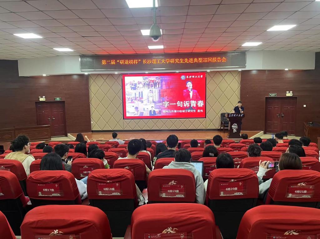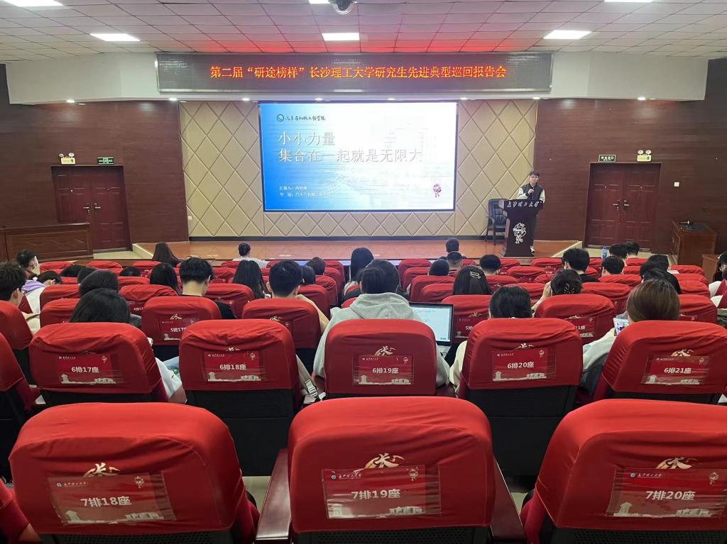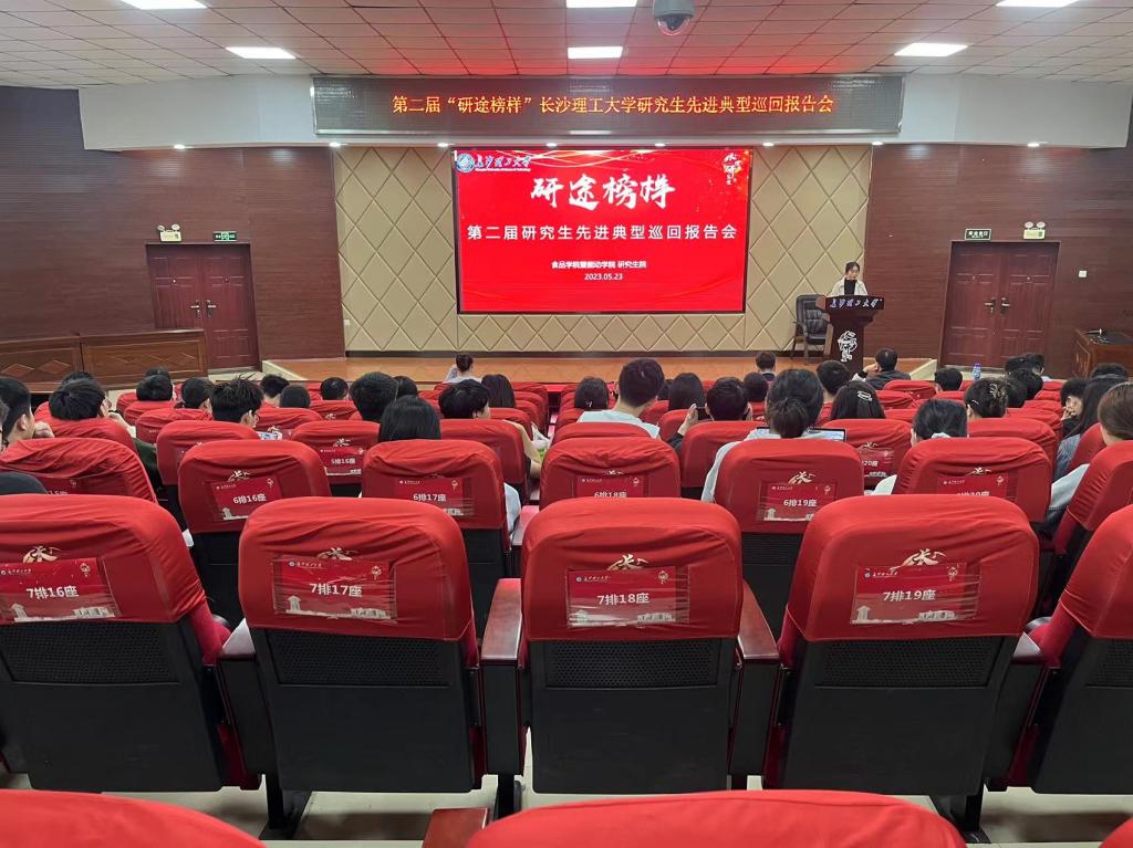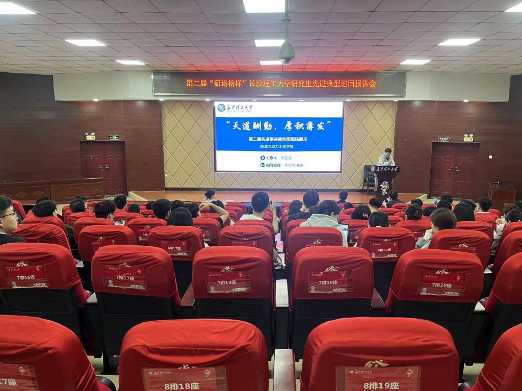 为展现新时代长理研究生的精神风貌,充分发挥先进典型的示范引领作用,2023年5月23日下午14点,能动学院联合食品学院于长沙理工大学云塘校区文科楼A200报告厅举办了第二届“研途榜样”长沙理工大学研究生先进典型巡回报告会学院分会场,并邀请了能动学院李亚溪、食品学院徐丽、文新学院聂伟、汽机学院冯世成、能动学院张圆五位优秀研究生榜样进行宣讲,共计百余名研究生参会。